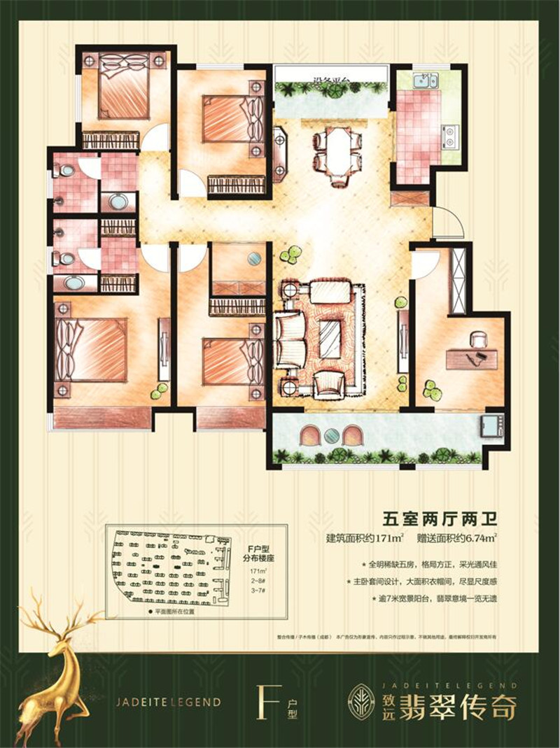致远翡翠传奇位于科技大道与湖北路交汇处西南角。首创九大意境的生态住区,不仅有上风上水的大盘规划,更有以“人”为本的设计理念:社区配备WIFI全覆盖,在小区的任何角落随心所欲上网冲浪,这在高新区还是第一家,同时配有驱蚊灯、太阳能路灯、无障碍通行、直饮水入户、雾森系统等科技生活理念,贯彻的您的生活全部,可以说非常舒适、舒心。 园林景观方面,由国内著名景观设计院设计,借助起伏地势就地造景,错落有致,做到了五重绿化,多重组团,不仅有超大6000多坪的中央园林景观轴,还把握城市宜居最新生活理念:亲水平台、特色景墙、木栈道、观景桥、儿童娱乐空间......给予的是无限生机与灵气。归家即是漫步公园的旅行。 社区内几百种高、暖色调的植物配系,苗木品种极其丰富,不同季节性植物的色彩搭配,打造四季有景的环境景观,绿化率也比同类小区高10%-15%;而且,很多大型的乔木都是全冠移植,真正做到了5A级园林景观大盘。园林水系交错,有水则有生气、有灵气、有活力。水系更加增添了景观的趣味性,依水势而走,形成了独特的移步换景的效果。